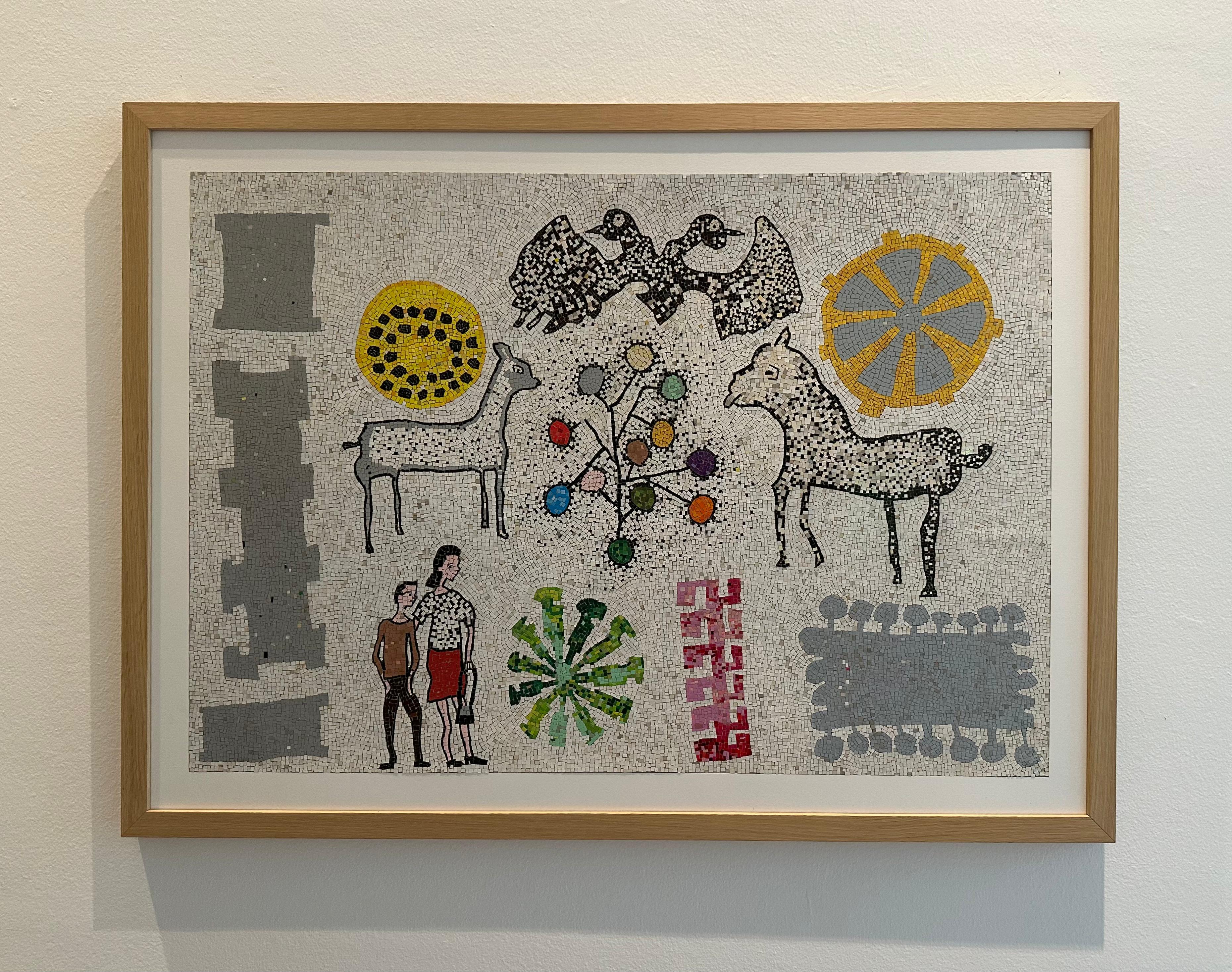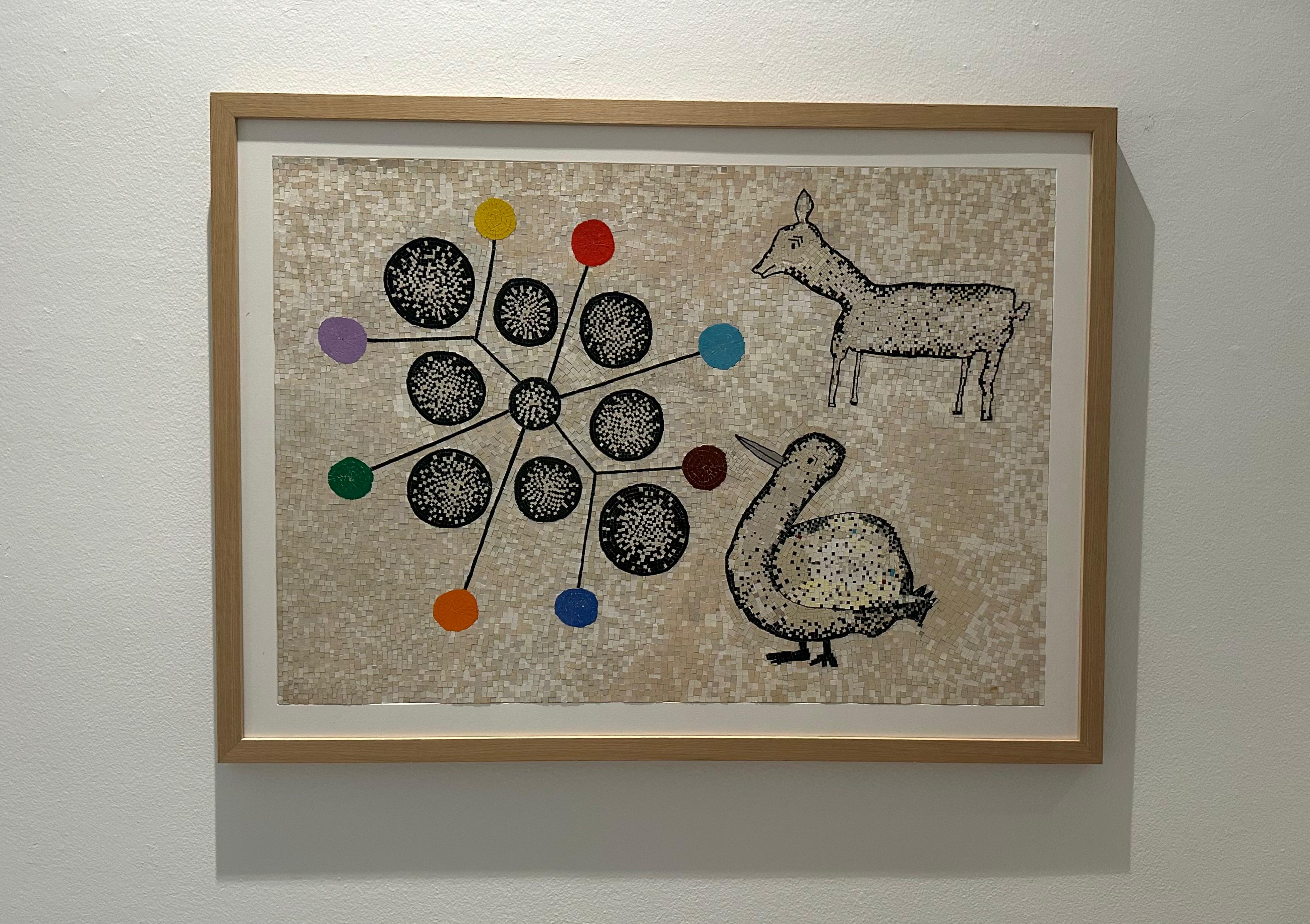 Veçanërisht tërheqës janë mozaikët në letër, një seri e krijuar nga ambalazhe të ricikluara të produkteve të ndryshme, të cilat janë ekspozuar përgjatë korridorit të COD. Ferri i transformon mbetjet industriale në copa të vogla, të ndritshme, duke i dhënë jetë të re materiale të hedhura tutje. Këto fragmente, të prera dhe të vendosura me kujdes, imitojnë mozaikët prej guri, ndërsa ruajnë brishtësinë e letrës. Ky transformim, shpesh i fshehur pas imazheve narrative, fton publikun të afrohet dhe të vërejë më nga afër.
