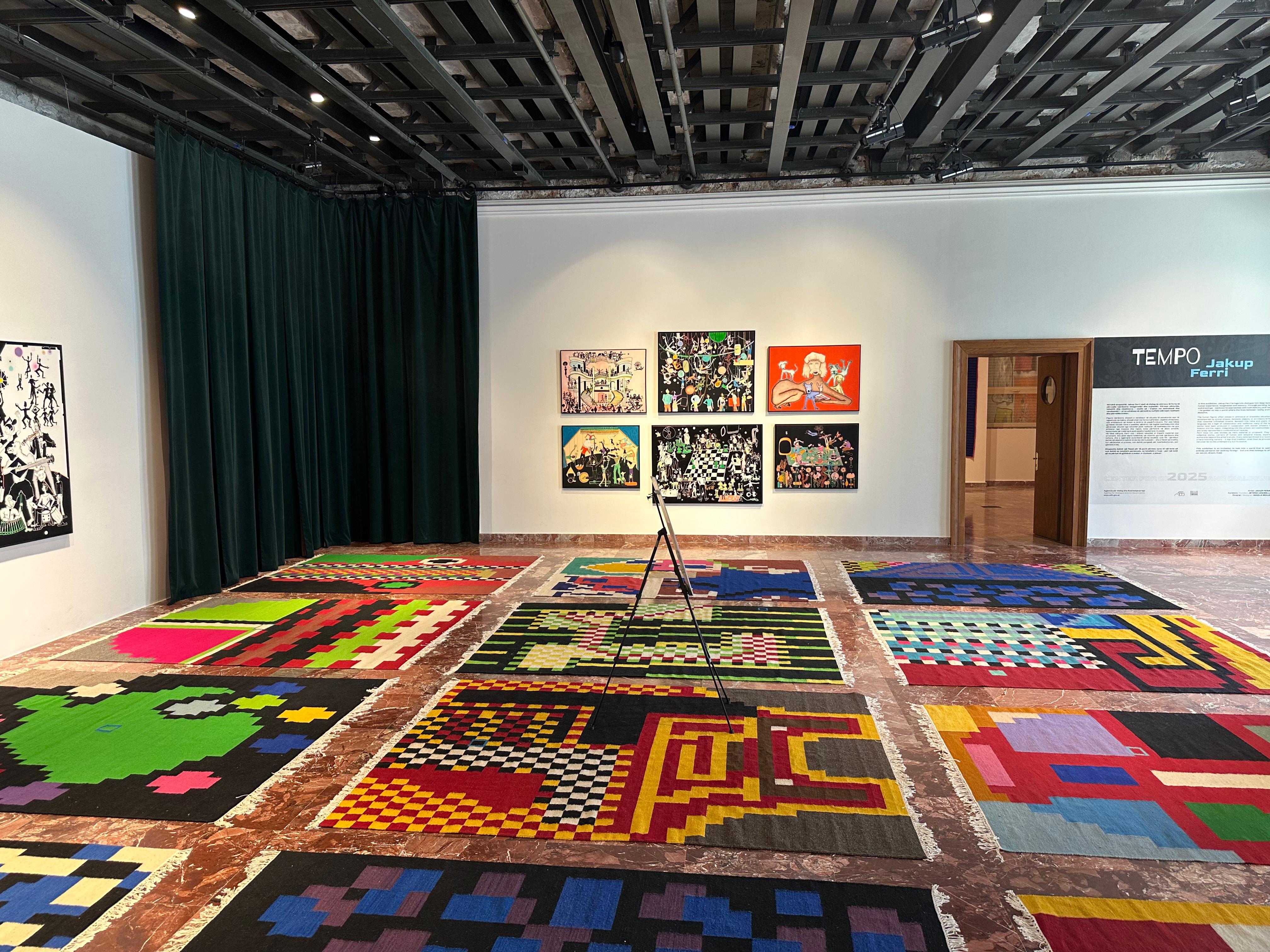 “TEMPO” titullohet ekspozita e parë vetjake e Jakup Ferrit, e hapur në Qendrën për Hapje dhe Dialog, ku paraqet një koleksion koheziv veprash që shtrihen nga piktura tek tekstili dhe mozaiku, duke ndërthurur fragmente të jetës së përditshme dhe surrealizmit. Ekspozita do të qëndrojë nga 10 shtatori deri më 10 tetor 2025.